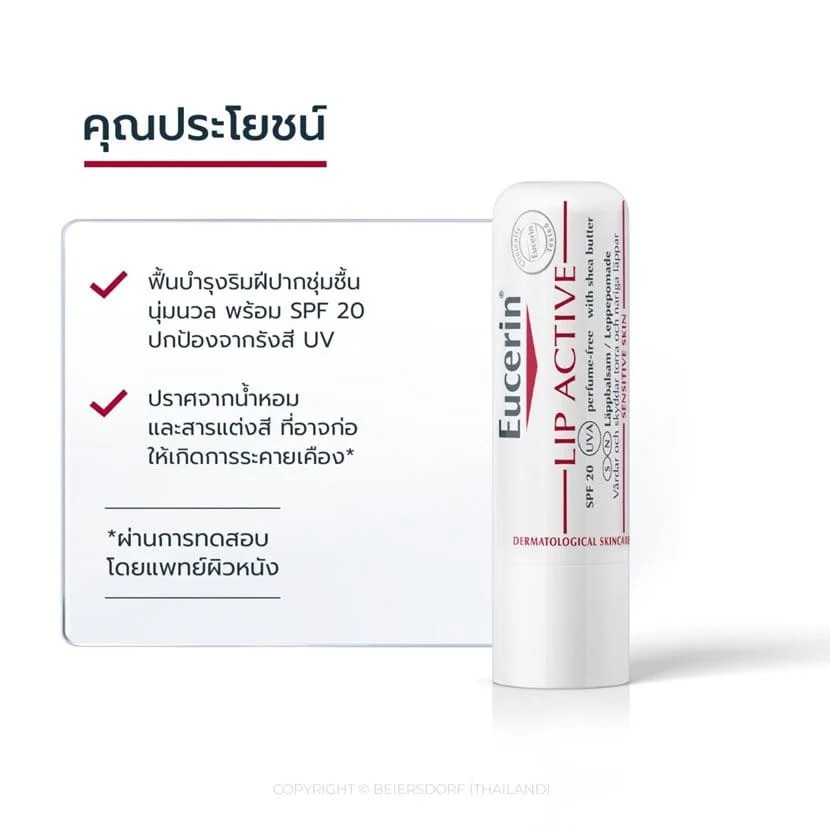 Eucerin Lip Active SPF20 4.8g ลิปแคร์บำรุงริมฝีปากให้ชุ่มชื้นยาวนานตลอดวัน
